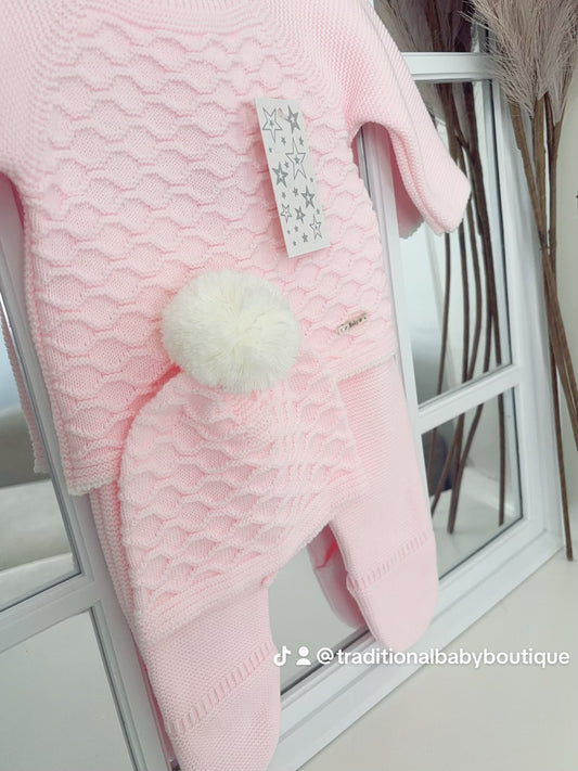 Baby girls knitted honeycomb set with hat
