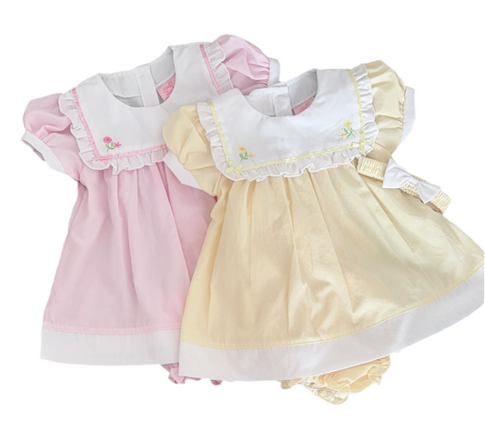 Baby girls smocked all in one with frilled collar