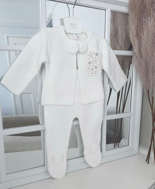Unisex white knitted ‘Pompom’ set