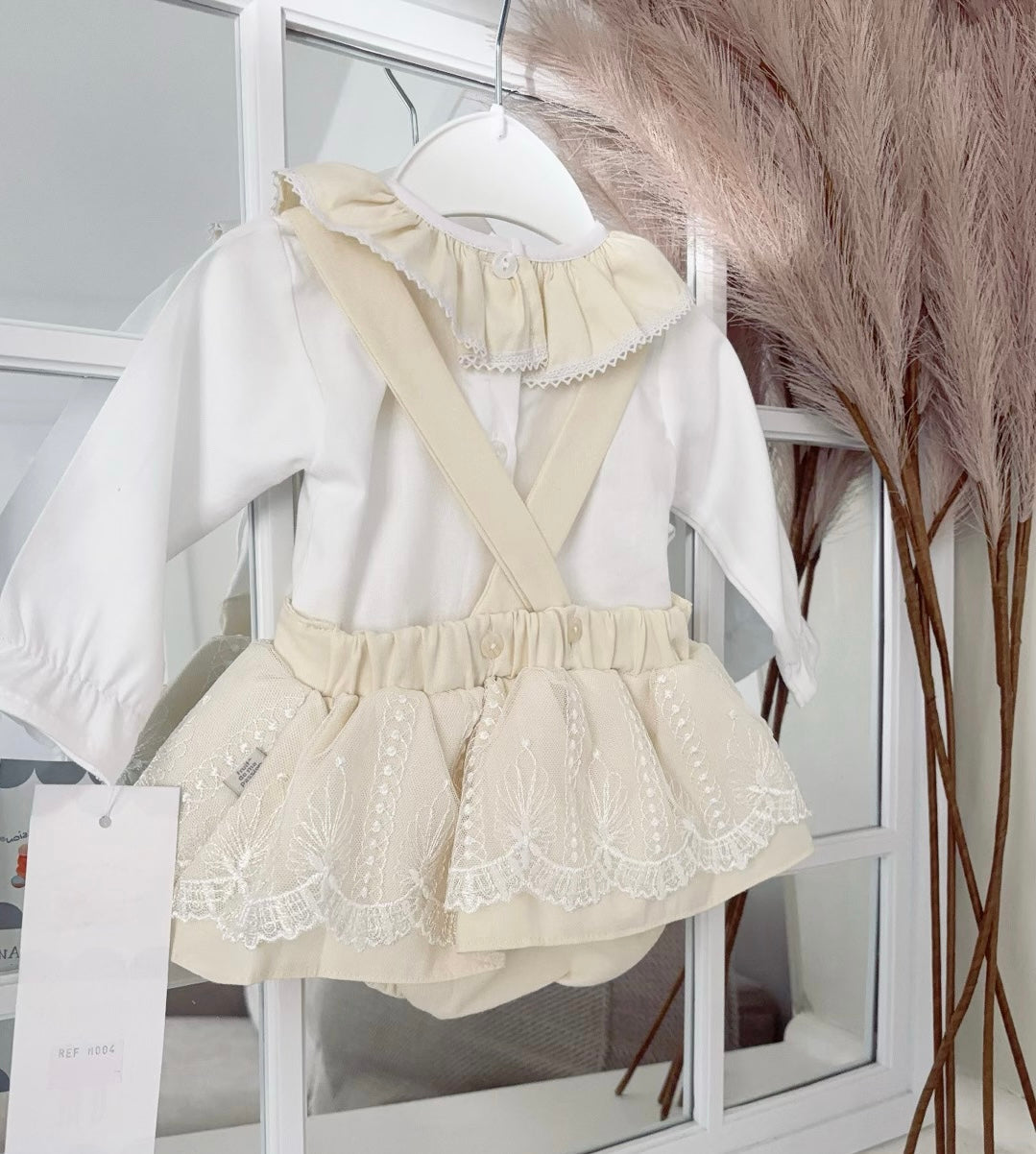 Baby girls “Penelope” lace pinafore dress and blouse set