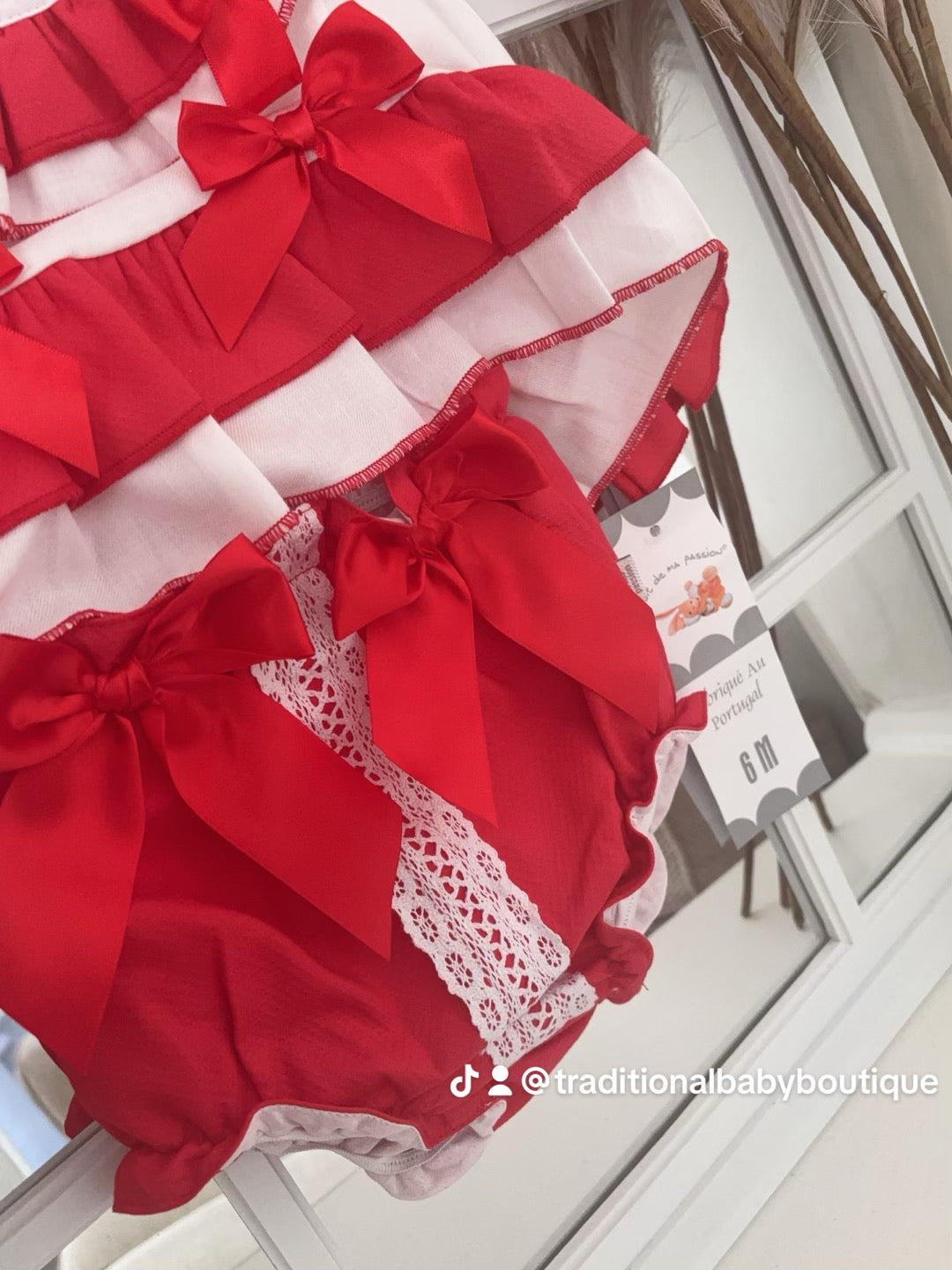 Baby girls red “Nancy” top and bloomer set