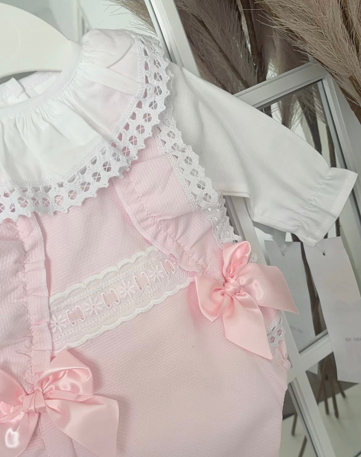 Indulge your little one in the ultimate luxury with our Baby Girls Slotted Ribbon Set. The slotted ribbon romper and blouse duo exudes sophistication and elegance, perfect for any special occasion. Crafted with delicate details and high-quality materials, this set is not just a fashion statement, but a work of art.