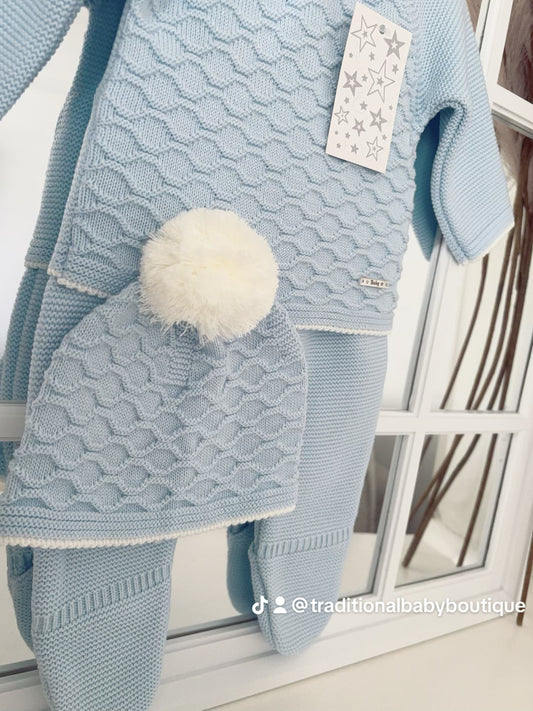 Baby boys knitted honeycomb set with hat